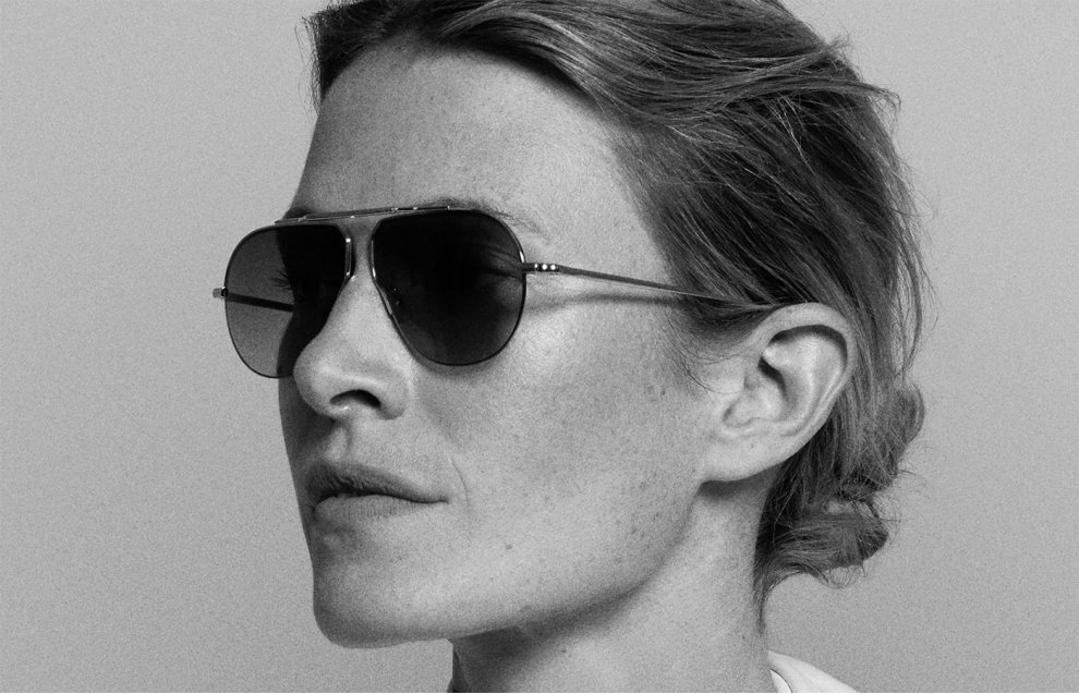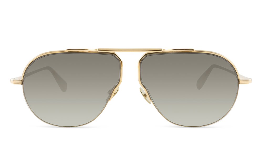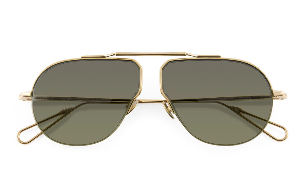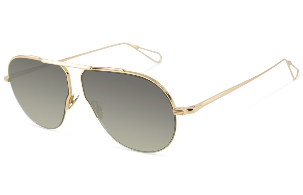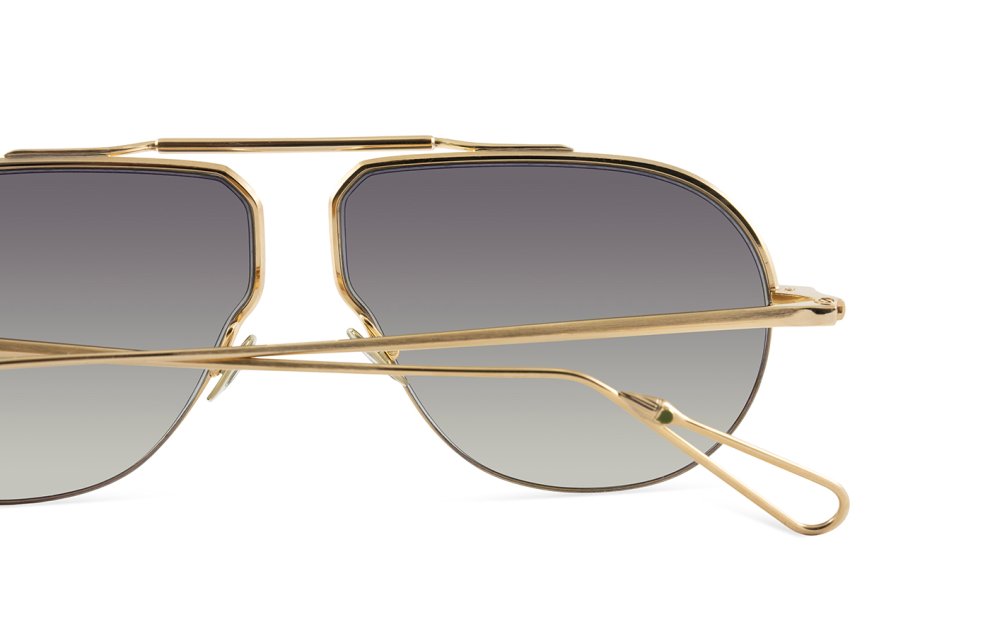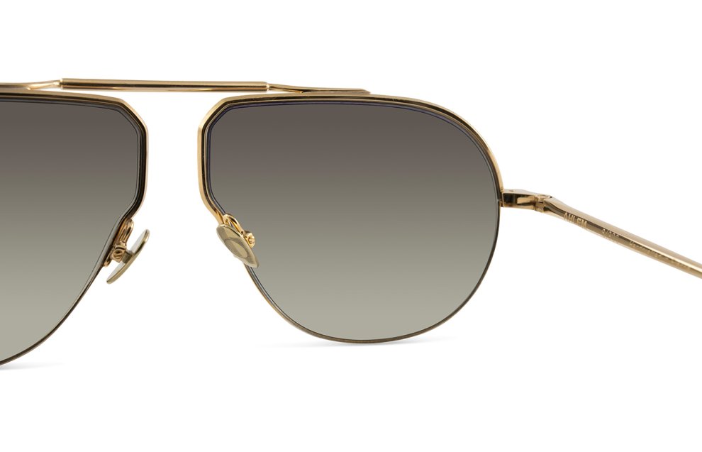 Una montatura unisex realizzata in acciaio placcato in palladio e oro 22 kt con naselli in titanio inciso, edizione limitata di 300 creazioni.