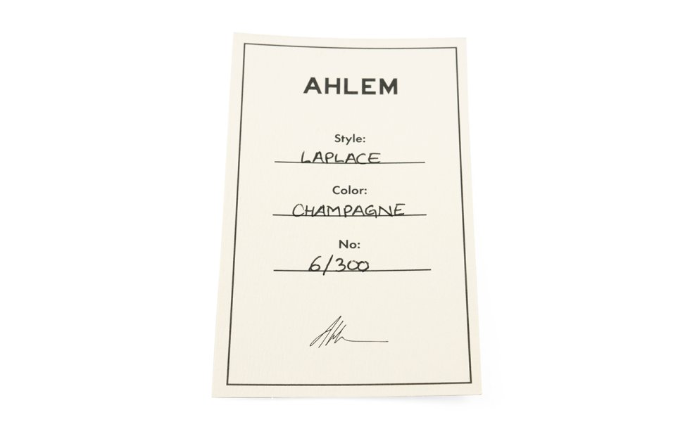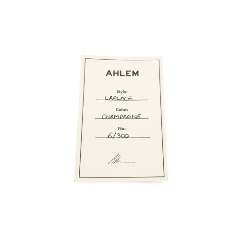 L' Ahlem Laplace dal colore champagne è un occhiale prodotto a mano in Francia con lenti semi flat rain gradient 100% anti UV con antiriflesso interno.
