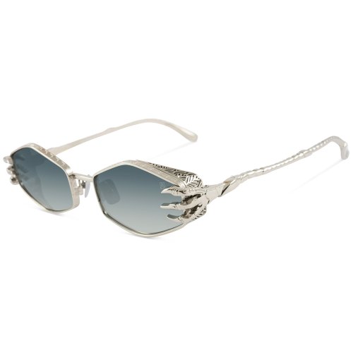The Anna Karin Karlsson - Claw Plume in white gold color is an eyewear handmade in Japan with grey / blue gradient 100% UV protect lenses with backside anti-glare.