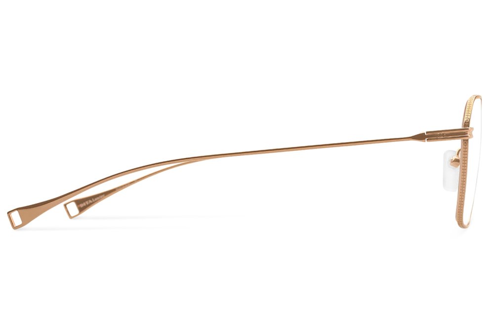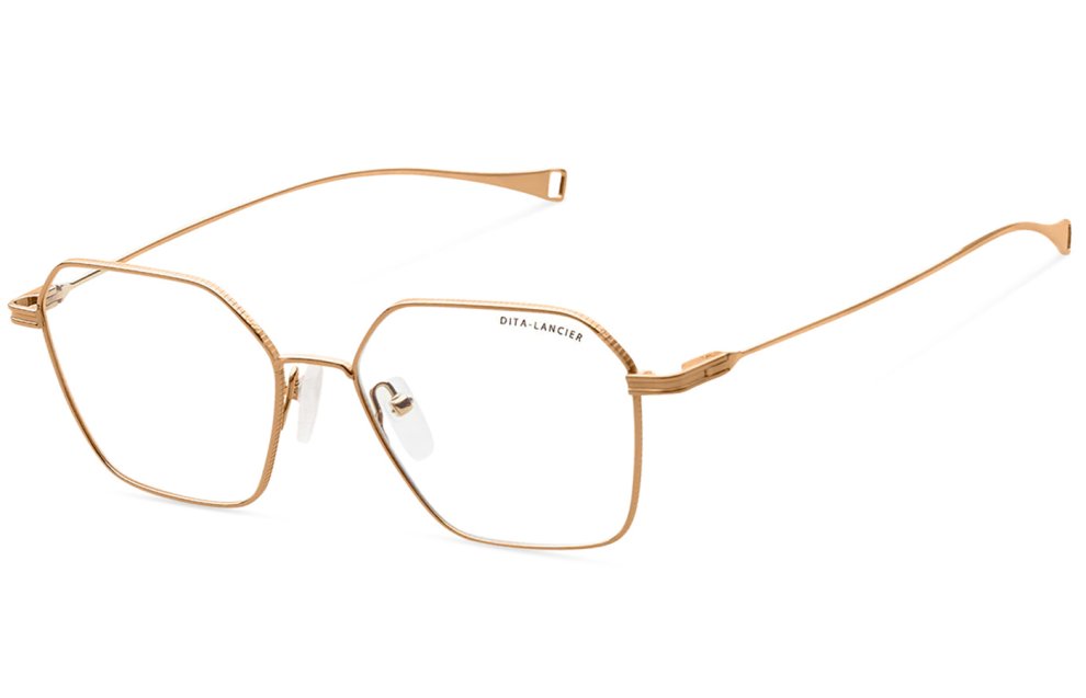 The Dita Lancier LSA-116 in pink gold color is a female eyewear made in Japan with demo lenses suitable for mounting prescription lenses.