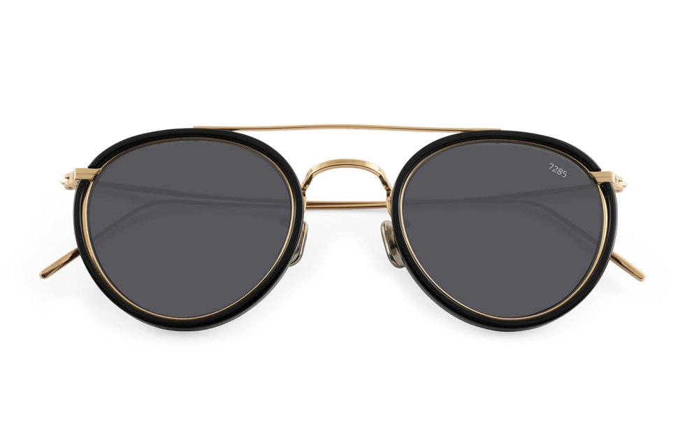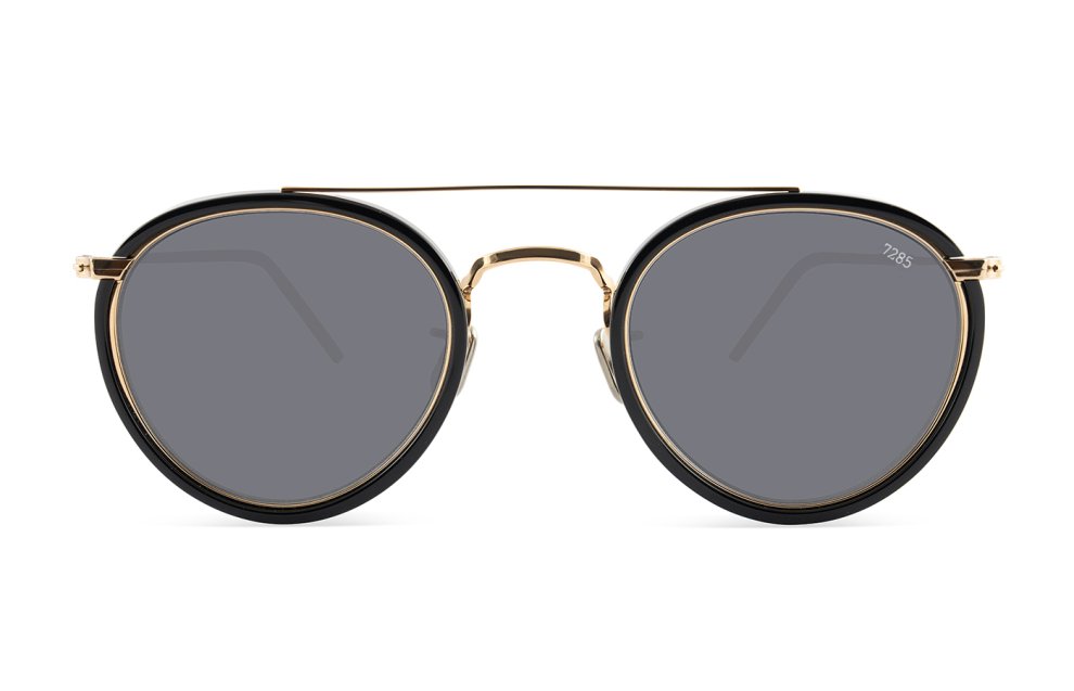 L' Eyevan 7285 - 762 dal colore black / gold è un occhiale unisex prodotto in Giappone con lenti in cristallo flat 100% anti UV e trattamento antiriflesso interno dal colore grigio.