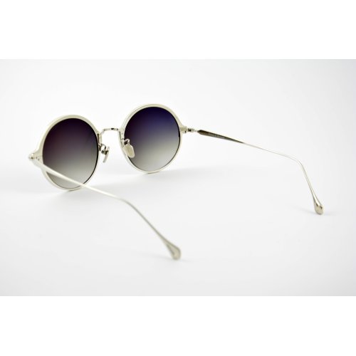 A unisex frame made of pure Japanese titanium has gray gradient lenses 100% UV protect and backside anti-reflective coating.