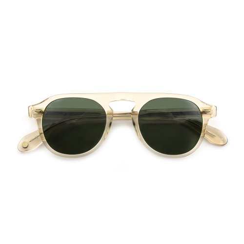 Il Garrett Leight Harding dal colore champagne è un occhiale unisex con lenti in cristallo Pure Green 100% anti UV con antiriflesso interno.
