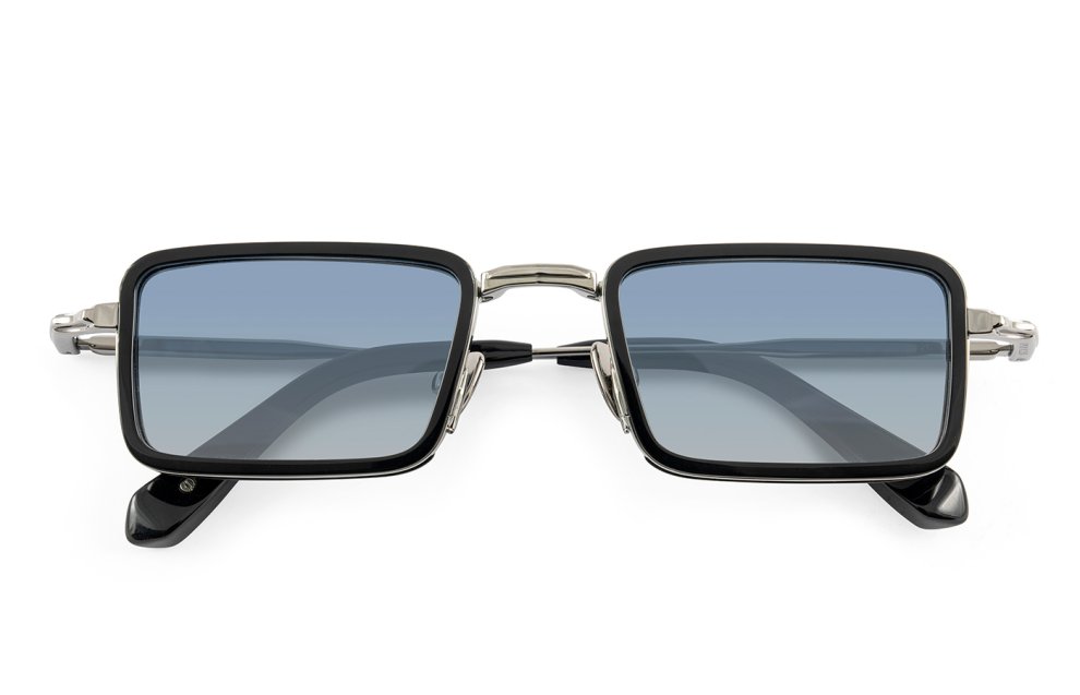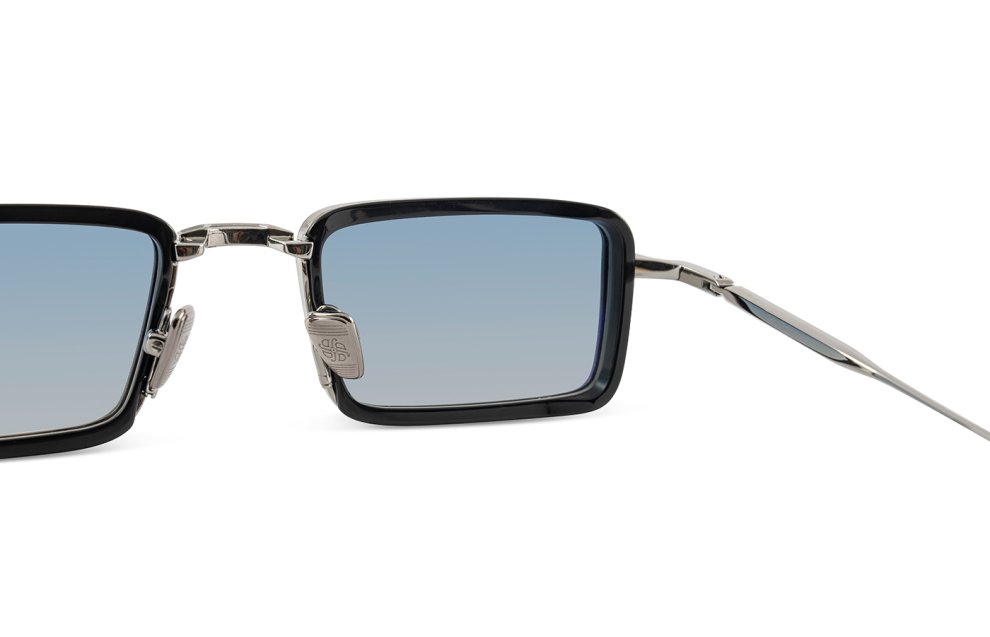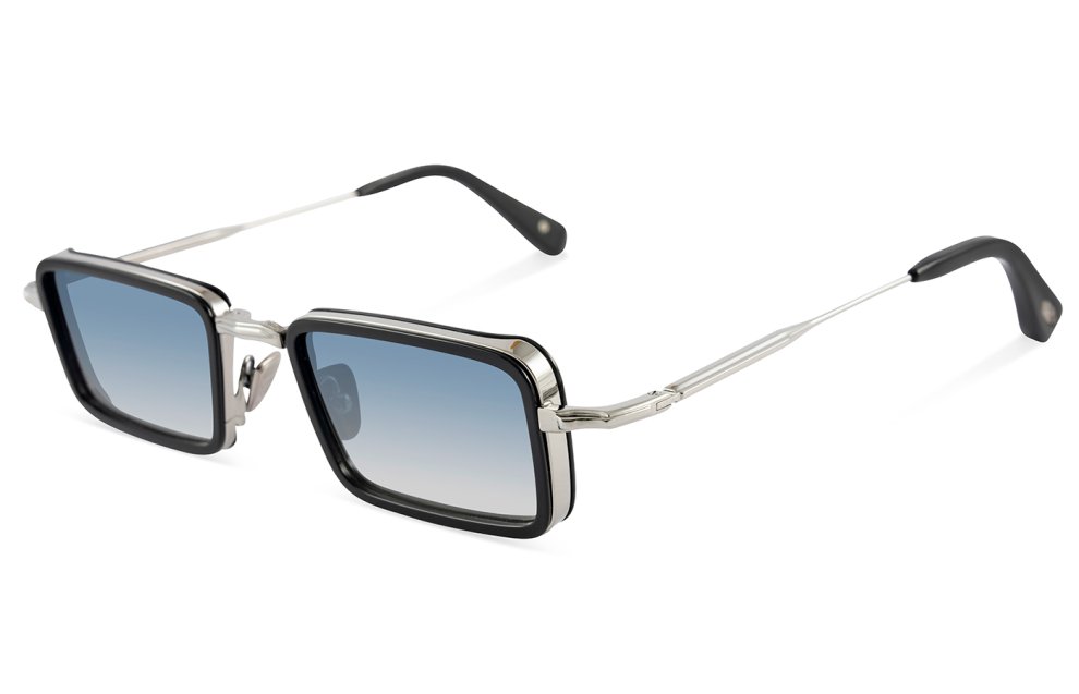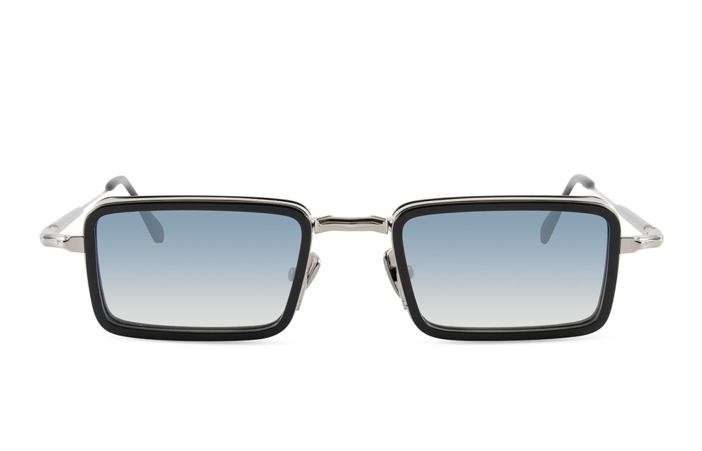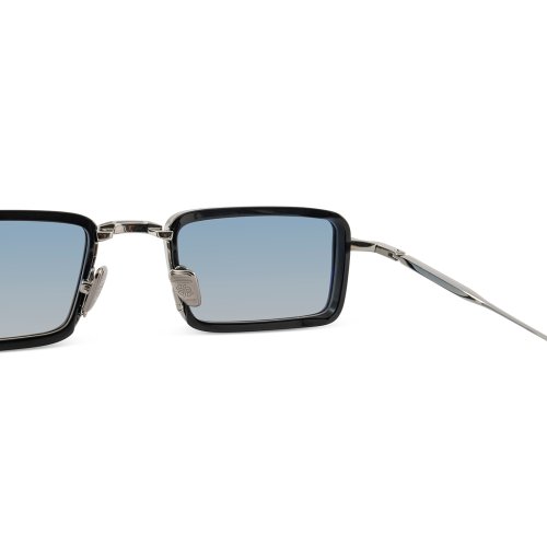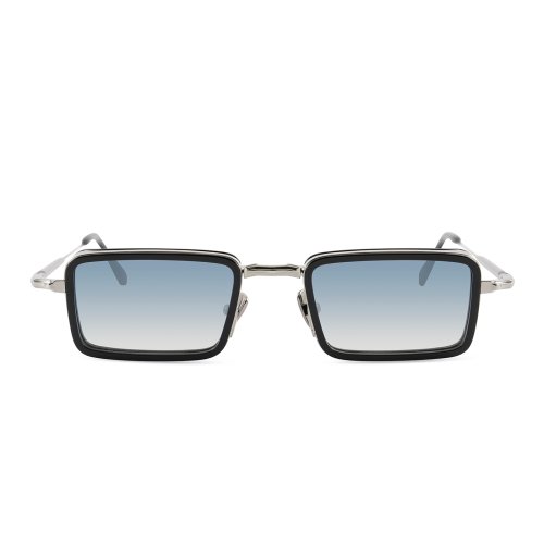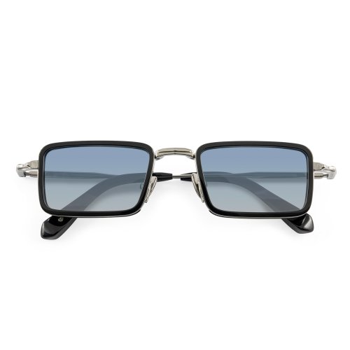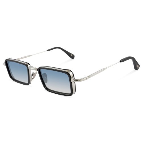 The John Dalia - Pierce in shiny black / ruthenium plated color is handmade in France sunglasses with grey / blue gradient lenses 100% UV protect and backside anti-glare.