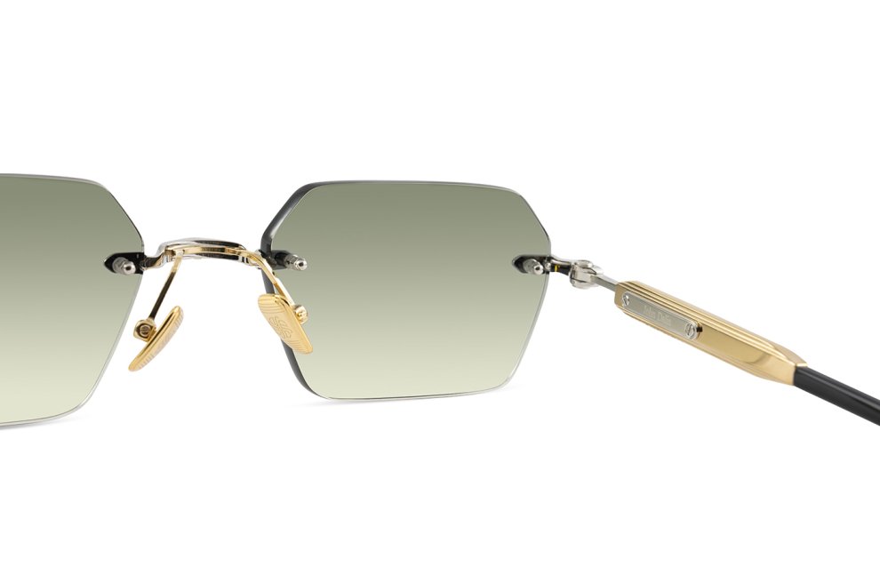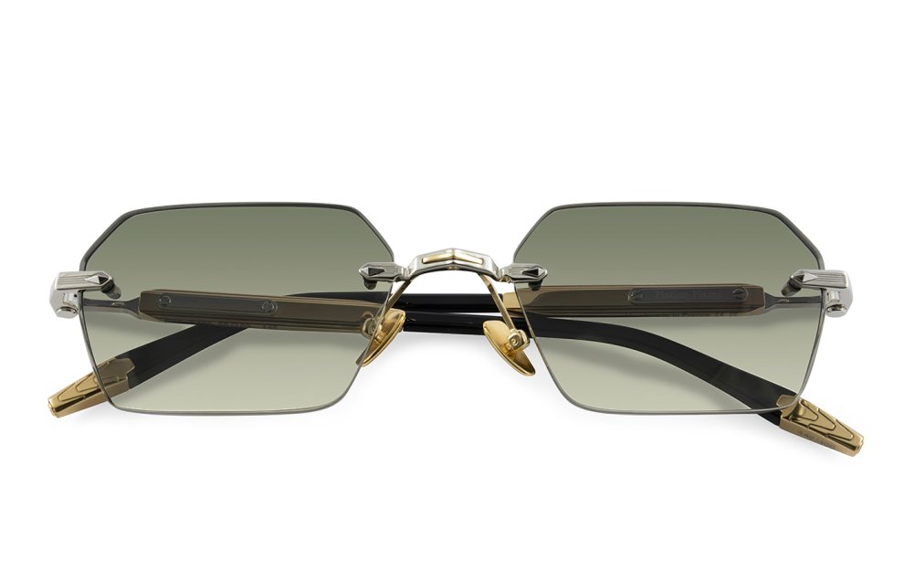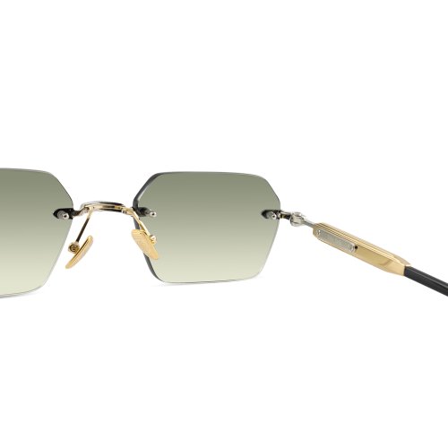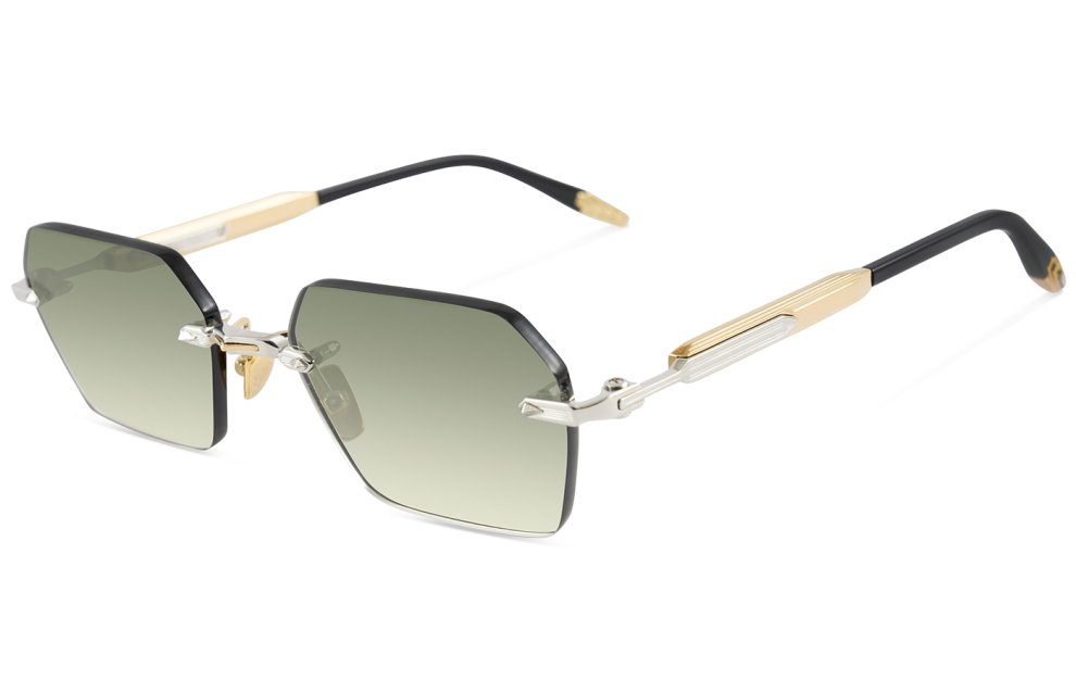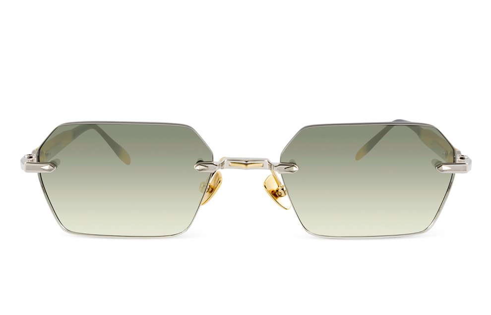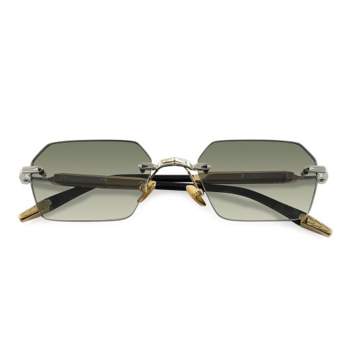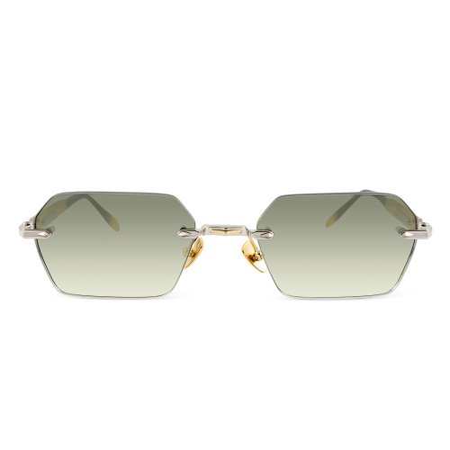The John Dalia - R03 in platinum plated color is handmade in France sunglasses with green gradient lenses 100% UV protect and backside anti-glare.