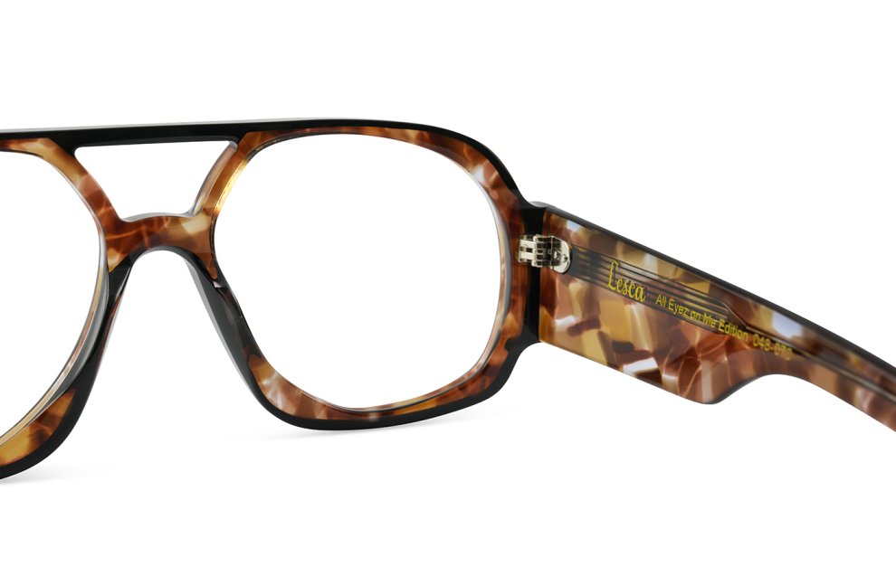 Il Lesca Lunetier - Tupac dal colore marbled tortoiseshell / Black con lenti neutre è un occhiale fatto a mano, un edizione limitata e numerata per i 60 anni del brand.