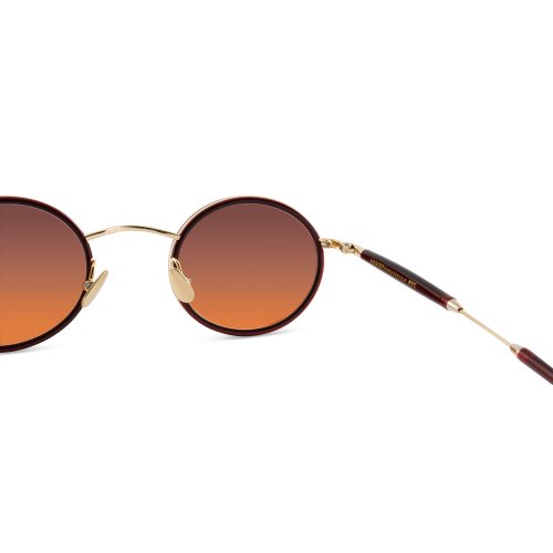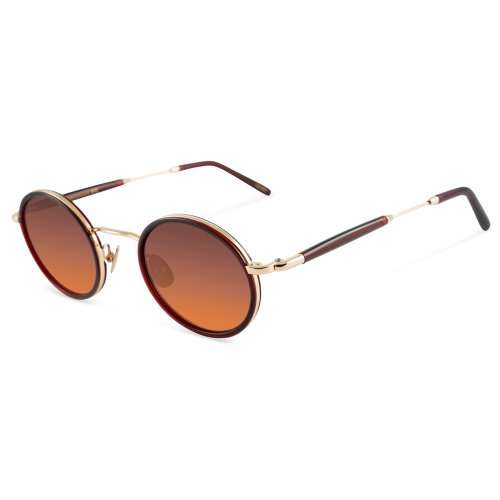 The Moscot Cosnic sun in burgundy color with cabernet lenses 100% UV protect and backside anti-glare is a unisex eyewear made of acetate and metal.