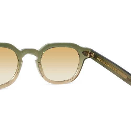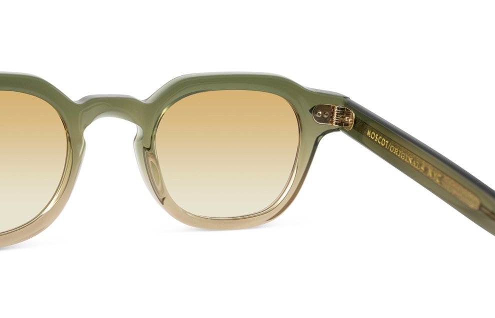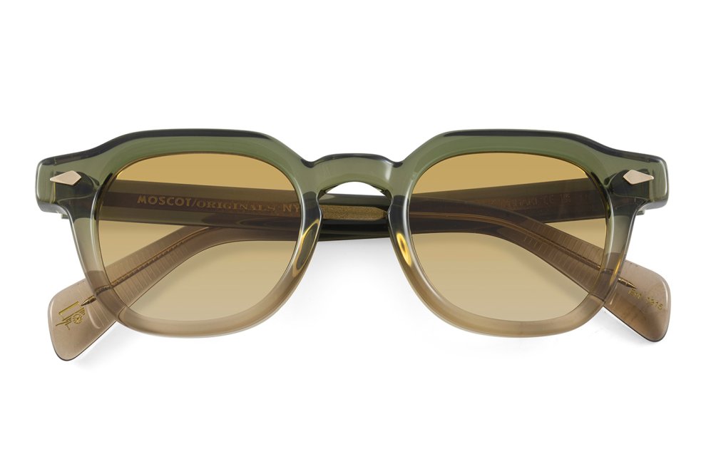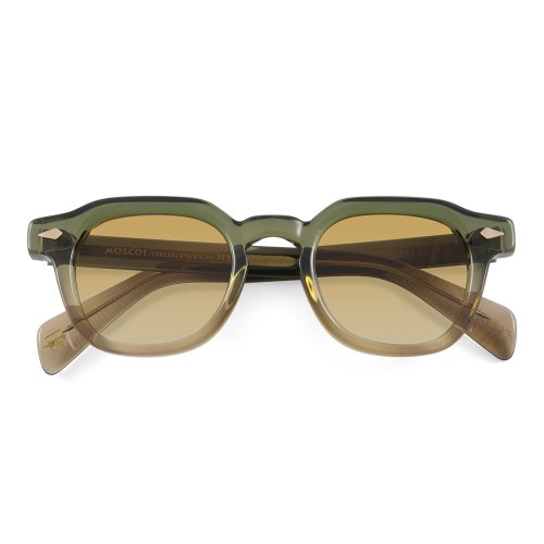 The Moscot Dolt in khaki color with chestnut fade lenses 100% UV protect with backside anti-glare is a unisex eyewear made of acetate.