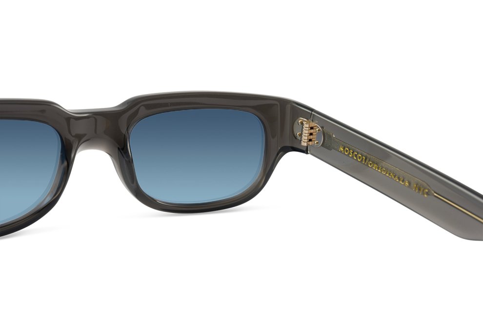 The Moscot Shtup sun in grey color with denim blue lenses 100% UV protect with backside anti-glare is a unisex eyewear made of acetate.