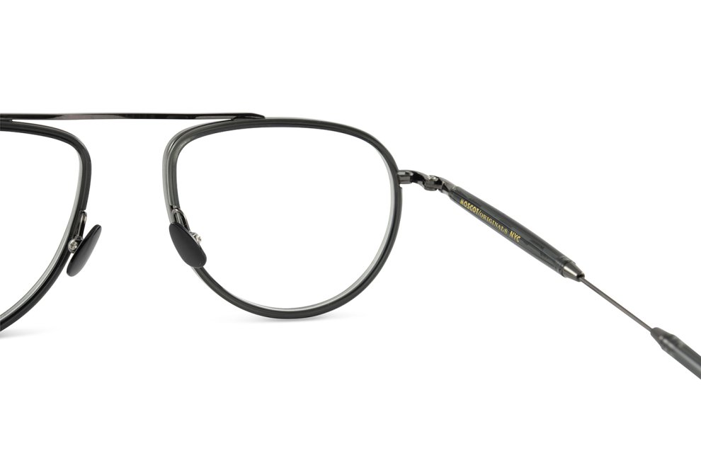 I Moscot vengono incisi con scritta dorata sulle aste per specificare modello, misura, colore e provenienza.