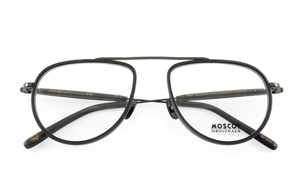 Il Moscot Traif dal colore dark grey / pewter con lenti neutre è un occhiale unisex realizzato in metallo e acetato.