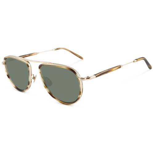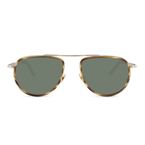 Il Moscot Traif sun dal colore bamboo / gold con lenti G-15 100% anti UV e antiriflesso interno è un occhiale unisex realizzato in metallo e acetato.
