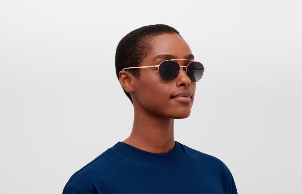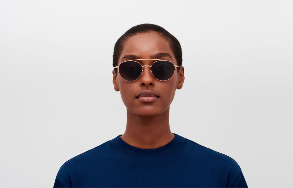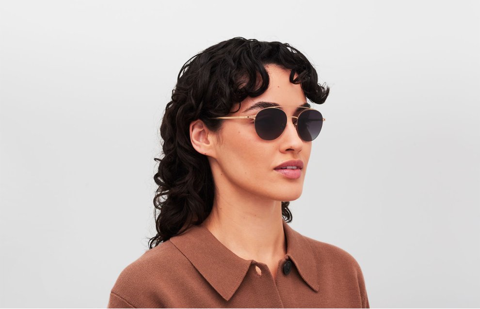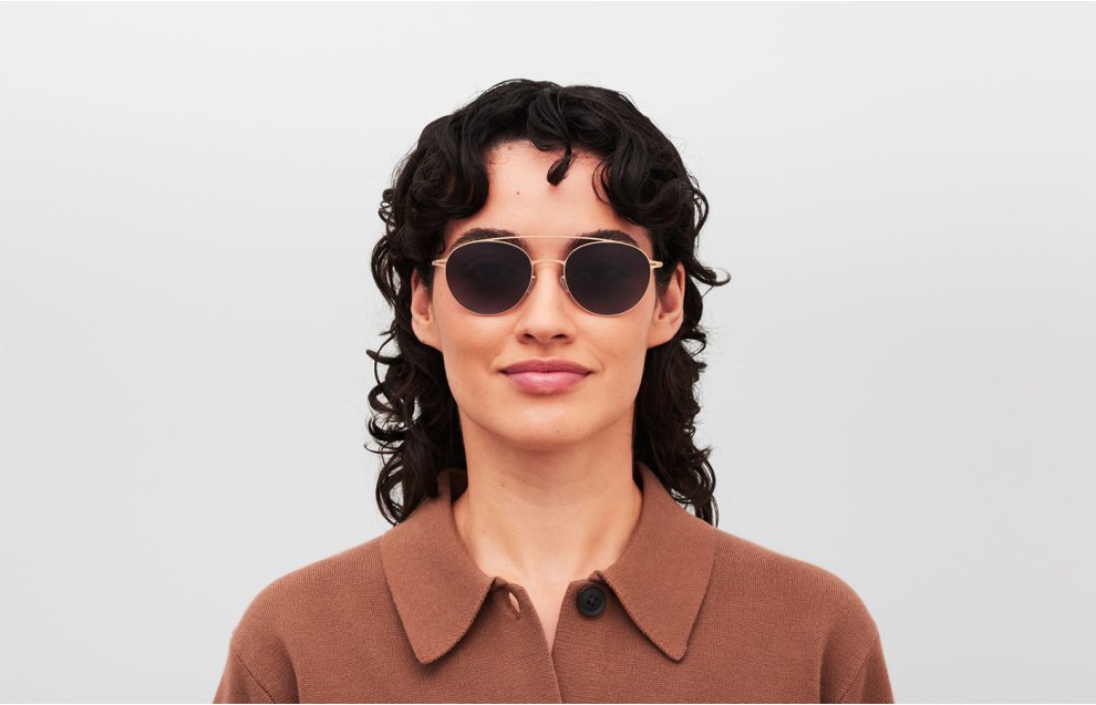 The Mykita - Reva in pow1 / champagne gold color is an eyewear designed and produced in Berlin, Germany.