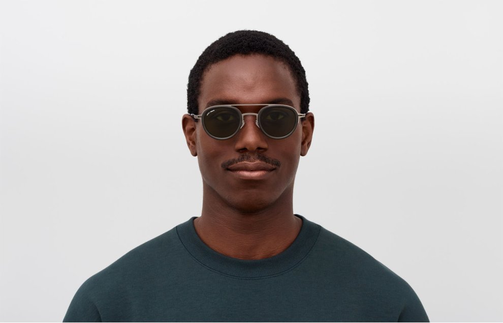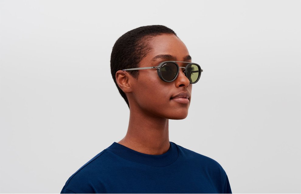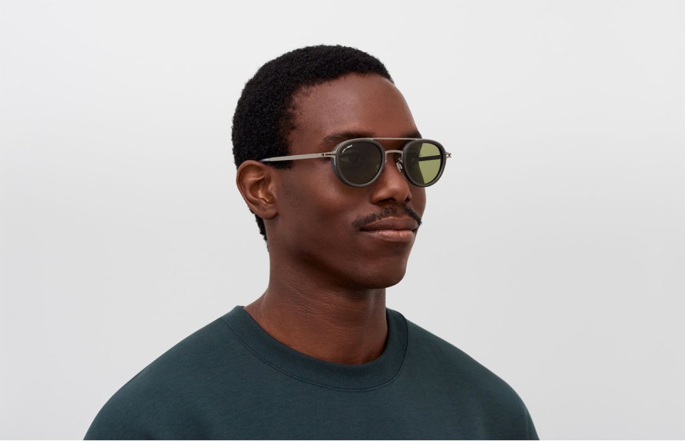 Il Mykita X OAMC - Grunt dal colore MH78 Safari green / shiny graphite è un' occhiale da sole disegnato e prodotto a Berlino in Germania.