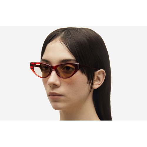 Il Projekt Produkt - FSCC5 C08 dal colore rosso è una montatura femminile prodotta in acetato, progettata e realizzata a Seoul in Corea del sud.
