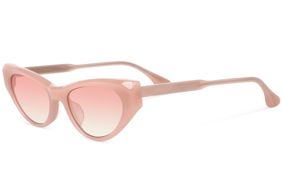L’ occhiale con lenti semi flat dal colore rosa sfumato con antiriflesso interno ha una protezione 100% anti UV.