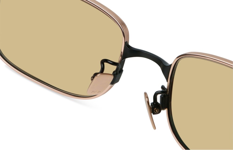 Il Projekt Produkt - ND9 C1PG dal colore matte black e pink gold è una montatura unisex prodotta in titanio, progettata e realizzata a Seoul in Corea del sud.