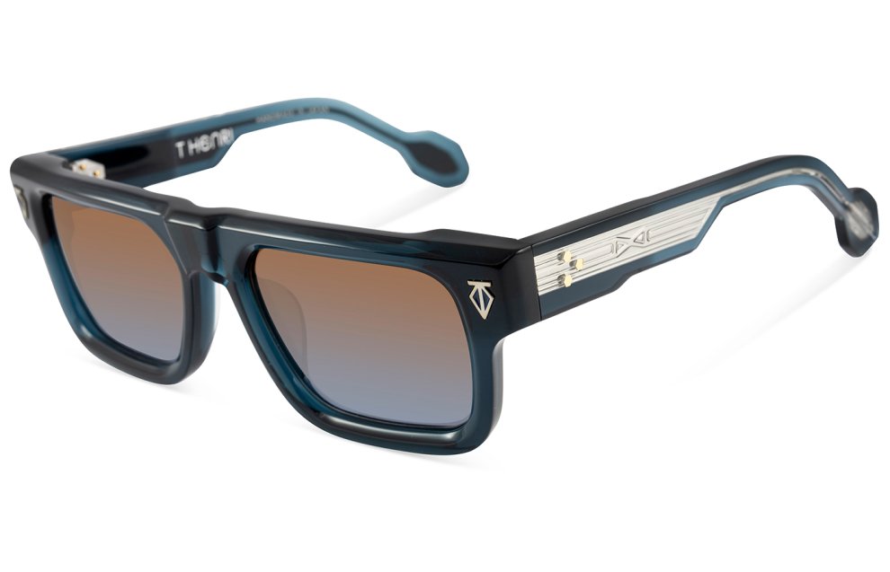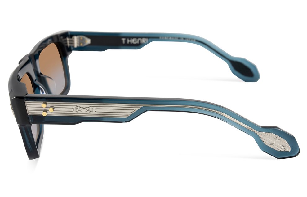 The T Henri - 959 in deep blue II color is handmade in Japan sunglasses with brown to blue lenses 100% UV protect and backside anti-glare.