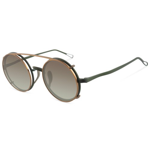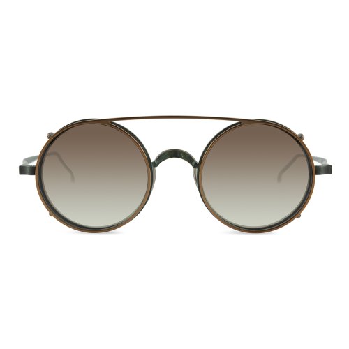 La montatura è fornita di clip-on bronze con lenti bronze gradient 100% anti UV, disponibile in un' unica misura: 49 - 23 - 145.