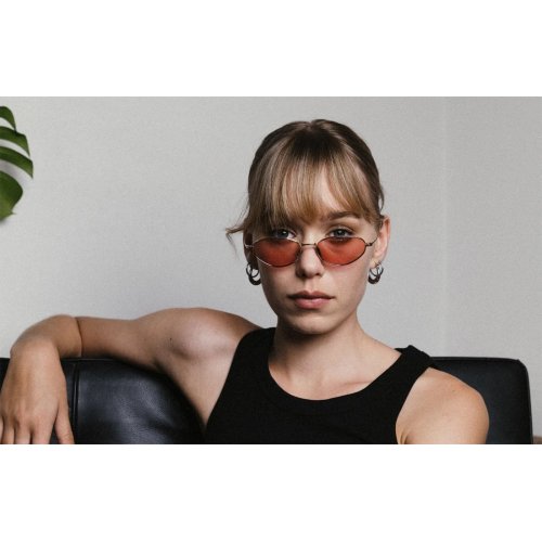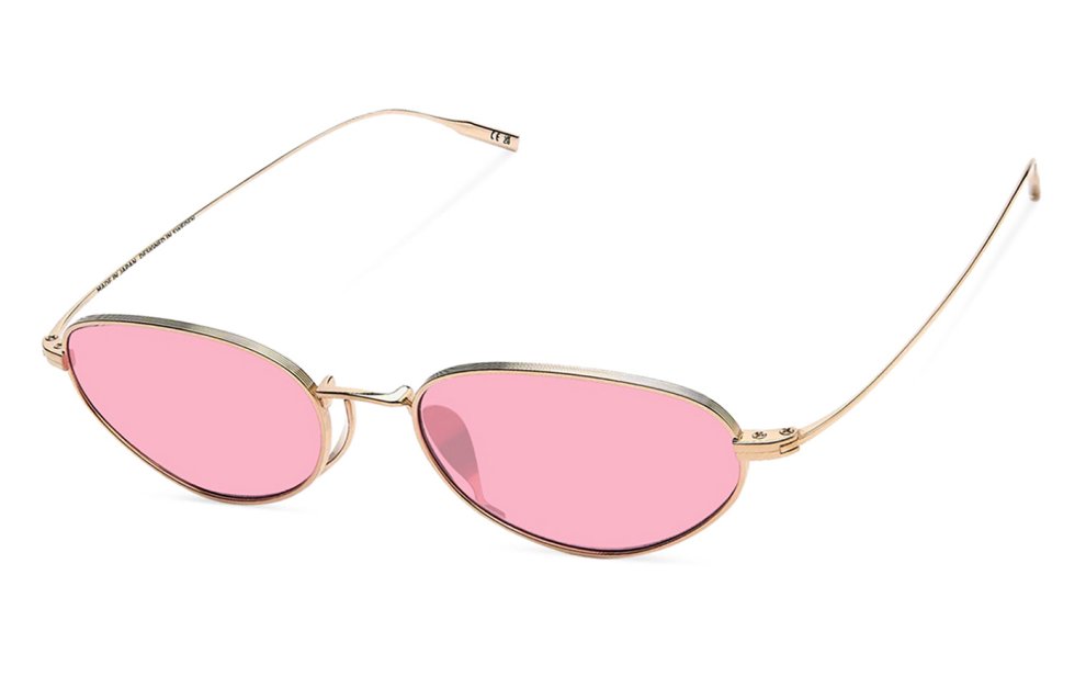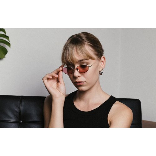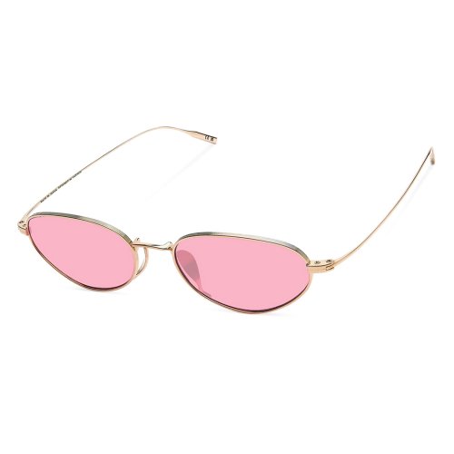 L'occhiale ha una montatura realizzata in titanio con lenti rosa 100% anti UV / UVB con antiriflesso interno.