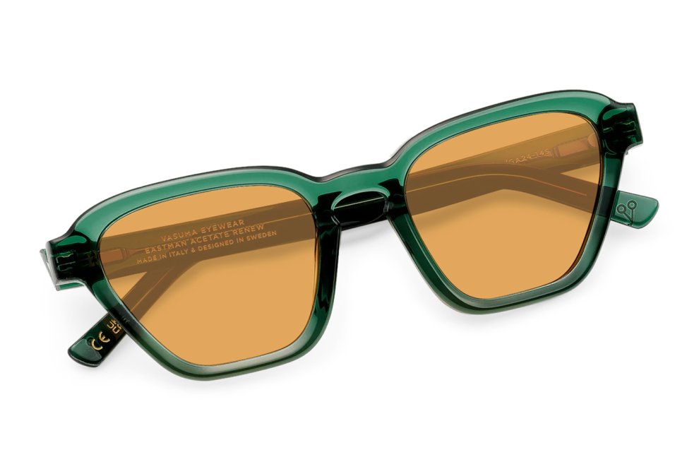 The frame has orange lenses 100% UV/UVB protect and is designed in Sweden and handmade in Italy.